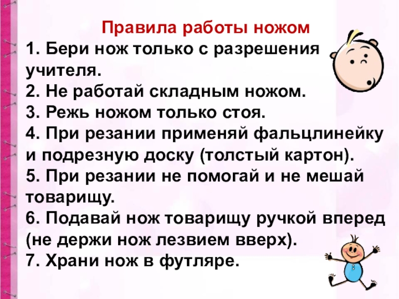 4. При резании применяй фальцлинейку и подрезную доску (толстый