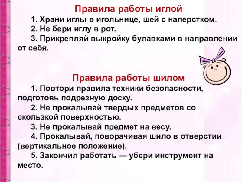 2. Не прокалывай твердых предметов со скользкой поверхностью.