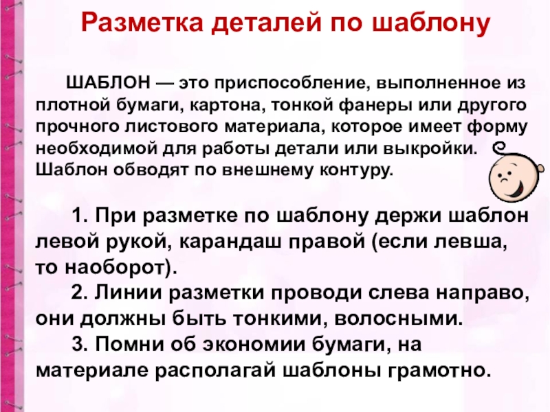 1. При разметке по шаблону держи шаблон левой рукой, карандаш правой (если левша, то наоборот).