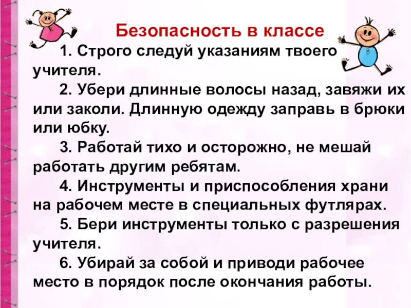 6. Убирай за собой и приводи рабочее место в порядок после окончания работы.