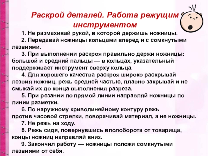 9. Закончил работу — ножницы положи сомкнутыми лезвиями от себя.