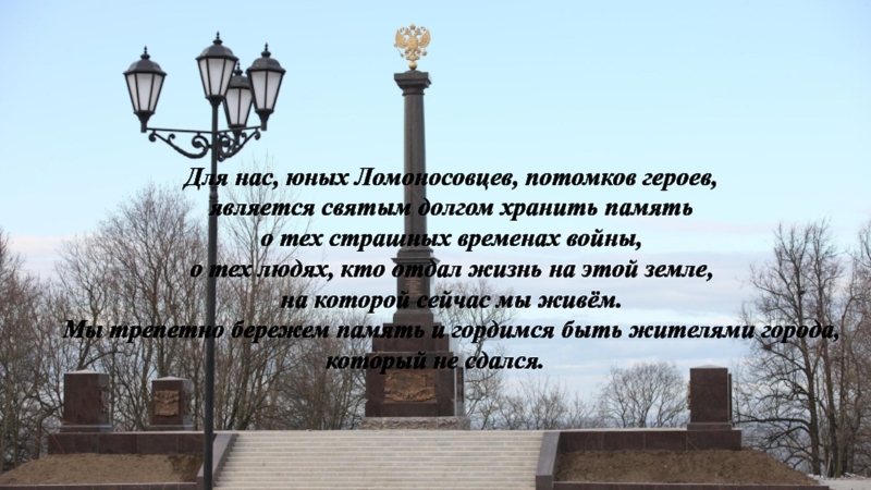 Слайд 17Для нас, юных Ломоносовцев, потомков героев,