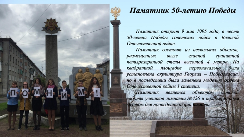 Слайд 11Памятник 50-летию Победы