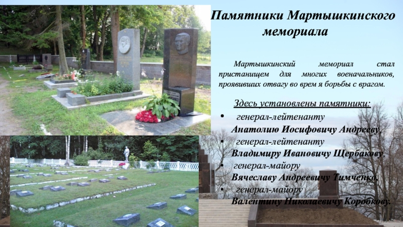 Слайд 16Памятники Мартышкинского мемориала