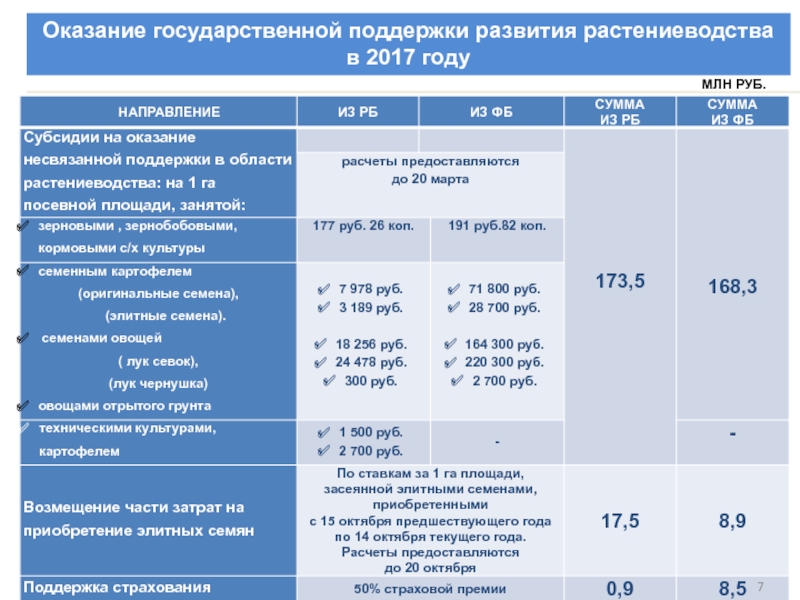 Оказание несвязанной поддержки в области растениеводства – 173,5 млн. руб. (6,6%)