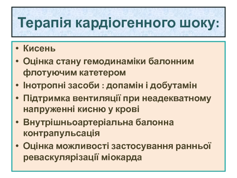 Слайд 76Терапія кардіогенного шоку: