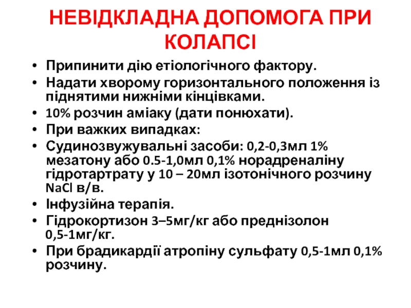 Слайд 13НЕВІДКЛАДНА ДОПОМОГА ПРИ КОЛАПСІ