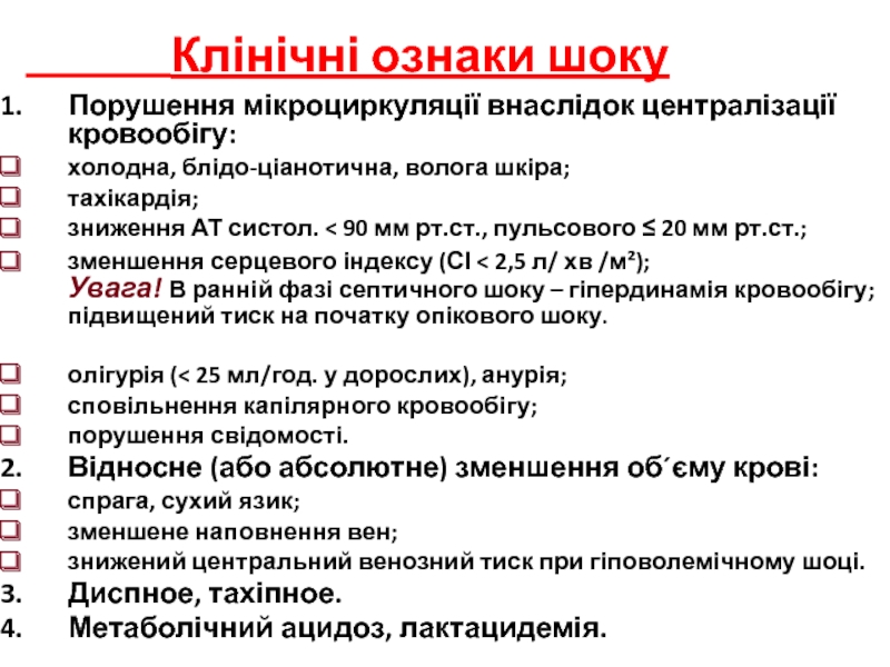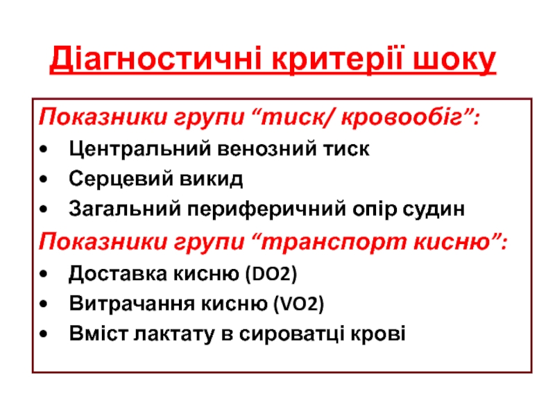 Слайд 18Діагностичні критерії шоку