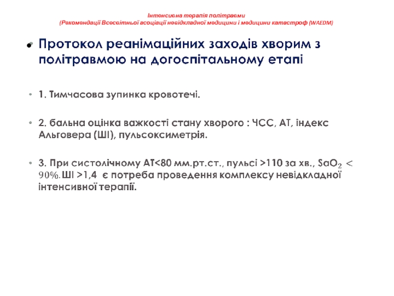 Заходи спрямовані на відновлення гострих порушень функції кровообігу і