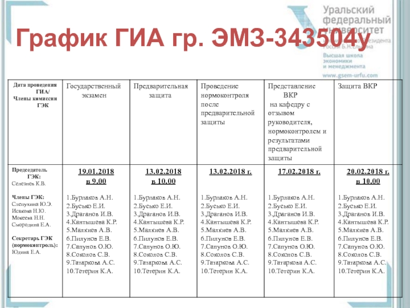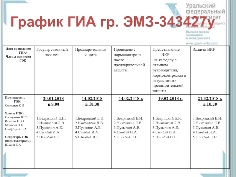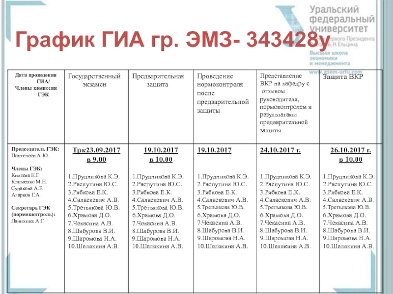 5. Состав государственной экзаменационной комиссии и распределение студентов по графику ГИА
