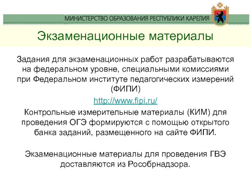 Задания для экзаменационных работ разрабатываются на федеральном уровне, специальными