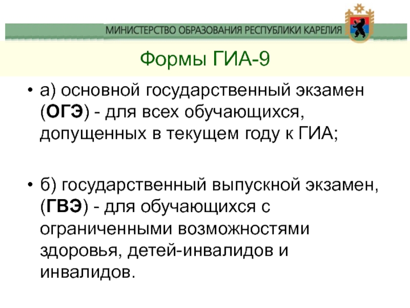 Слайд 8ГИА-9 для лиц с ограниченными возможностями здоровья
