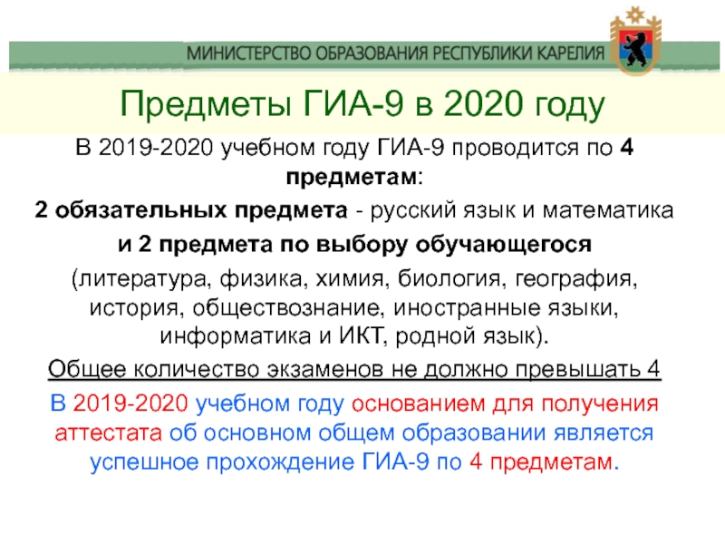 В 2019-2020 учебном году основанием для получения аттестата об основном общем образовании является успешное прохождение ГИА-9 по 4 предметам.