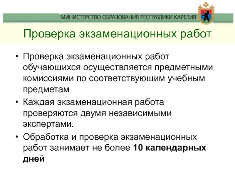 и проверка экзаменационных работ занимает не более 10 календарных дней