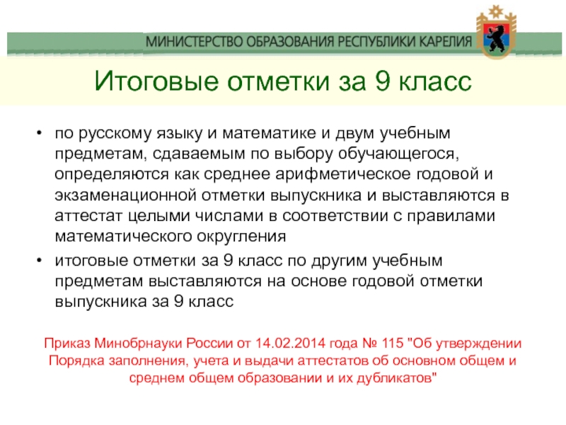 итоговые отметки за 9 класс по другим учебным предметам выставляются на основе годовой отметки выпускника за 9 класс