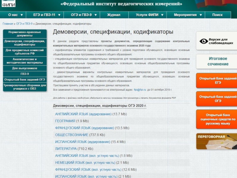 для проведения ОГЭ формируются с помощью открытого банка заданий, размещенного на сайте ФИПИ.