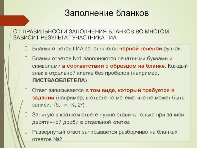 ОТ ПРАВИЛЬНОСТИ ЗАПОЛНЕНИЯ БЛАНКОВ ВО МНОГОМ ЗАВИСИТ РЕЗУЛЬТАТ УЧАСТНИКА ГИА