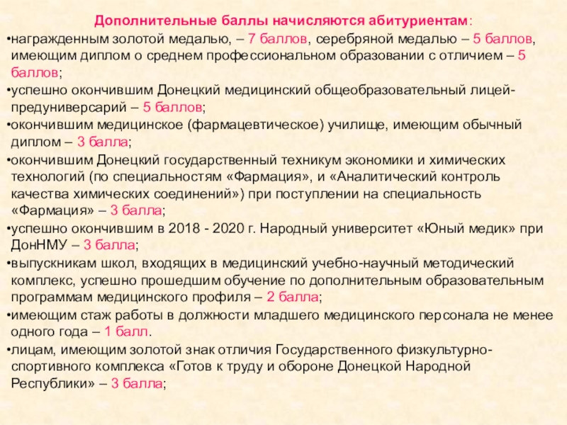 окончание долгосрочных (не менее 3-х месяцев в год поступления) подготовительных курсов ГОО ВПО ДОННМУ ИМ. М. ГОРЬКОГО с учетом результатов итоговой аттестации;