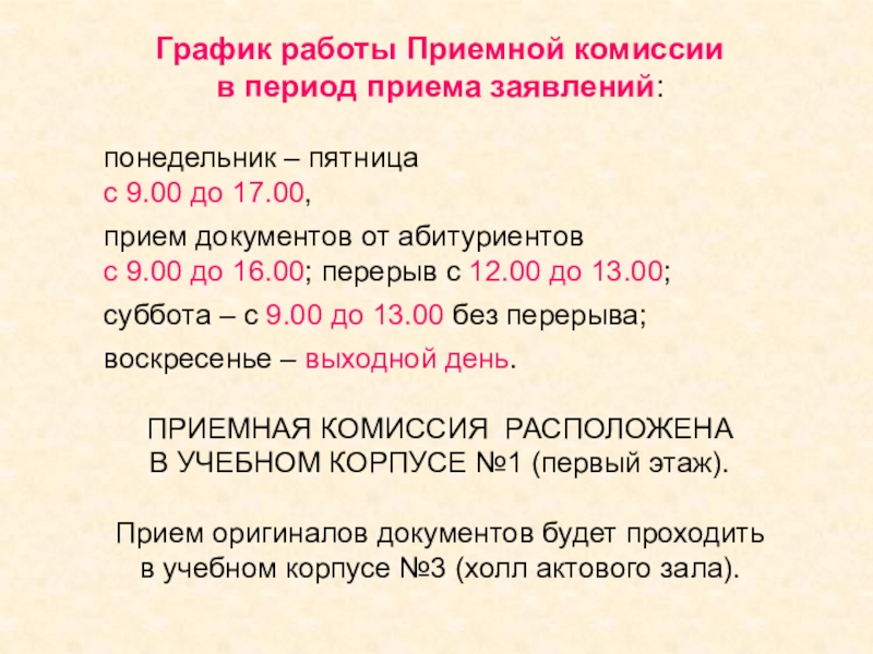 ПРИЕМНАЯ КОМИССИЯ РАСПОЛОЖЕНА