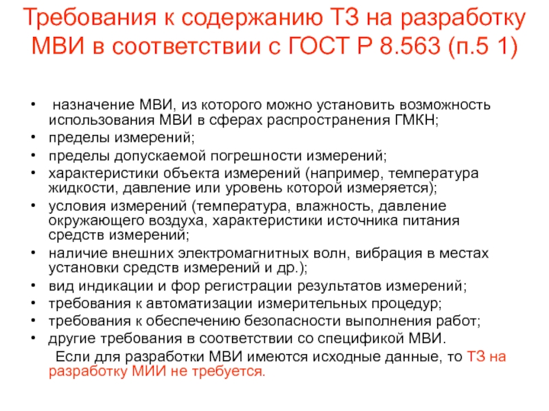 Слайд 9Требования к содержанию ТЗ на разработку МВИ в соответствии с