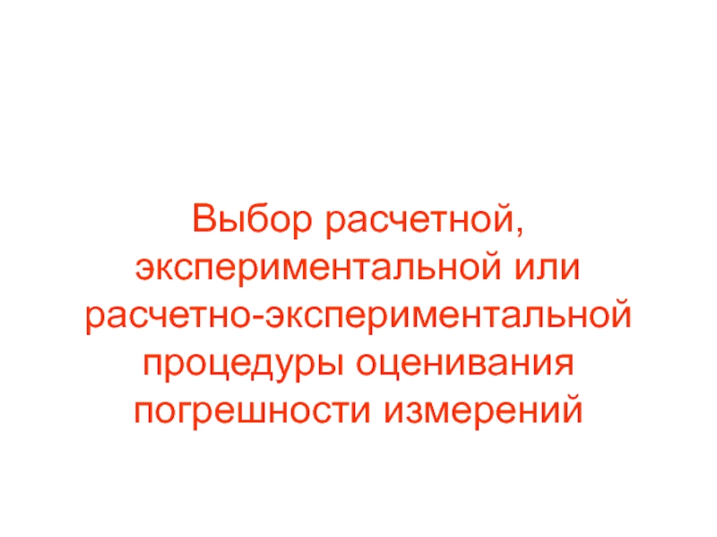 Слайд 17Выбор расчетной, экспериментальной или расчетно-экспериментальной процедуры оценивания погрешности измерений