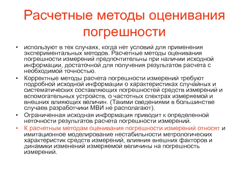 Слайд 18Расчетные методы оценивания погрешности