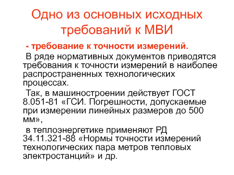 Слайд 11Одно из основных исходных требований к МВИ