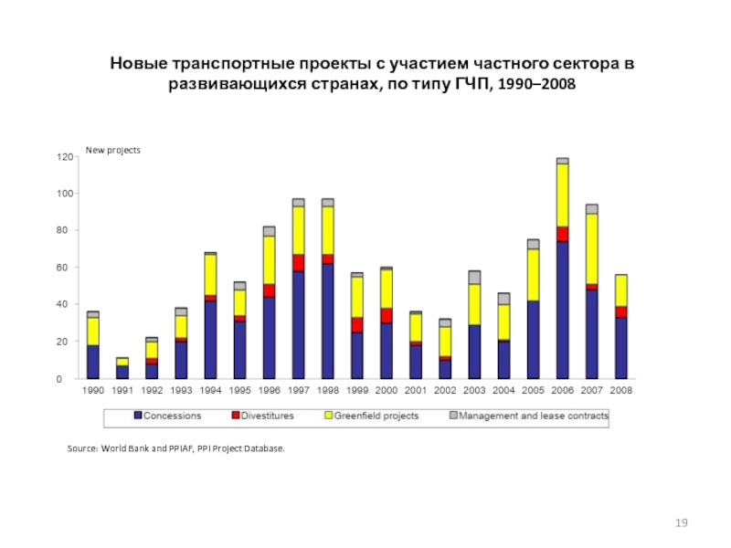 Слайд 19Новые транспортные проекты с участием частного сектора в развивающихся странах,