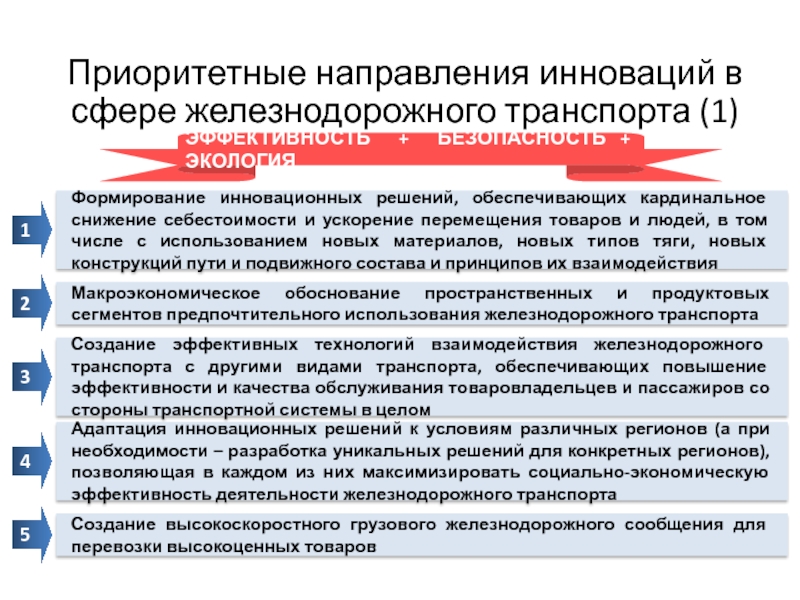 Слайд 38Приоритетные направления инноваций в сфере железнодорожного транспорта (1)