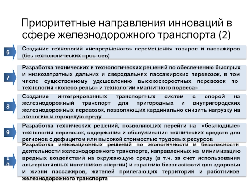 Слайд 39Приоритетные направления инноваций в сфере железнодорожного транспорта (2)