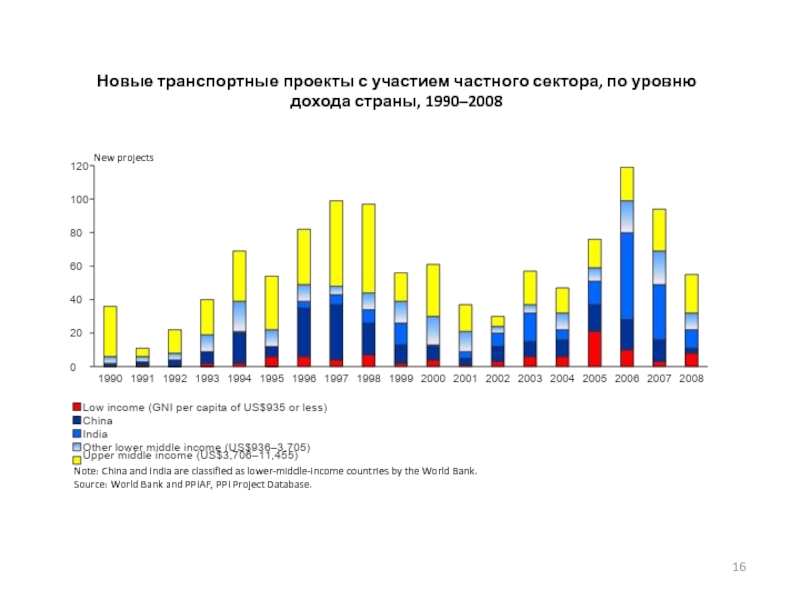 Слайд 16Новые транспортные проекты с участием частного сектора, по уровню дохода