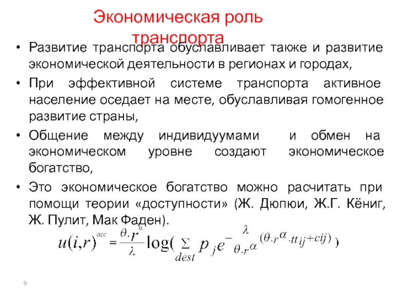 Это экономическое богатство можно расчитать при помощи теории «доступности» (Ж. Дюпюи, Ж.Г. Кёниг, Ж. Пулит, Мак Фаден).