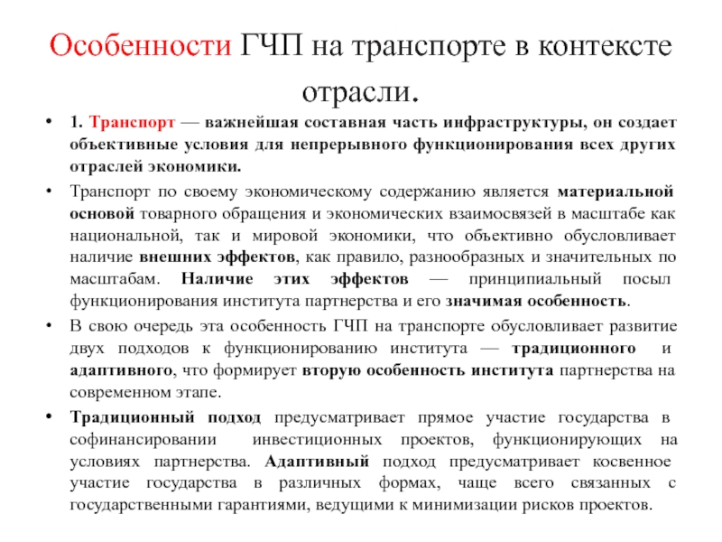 Слайд 2Особенности ГЧП на транспорте в контексте отрасли.