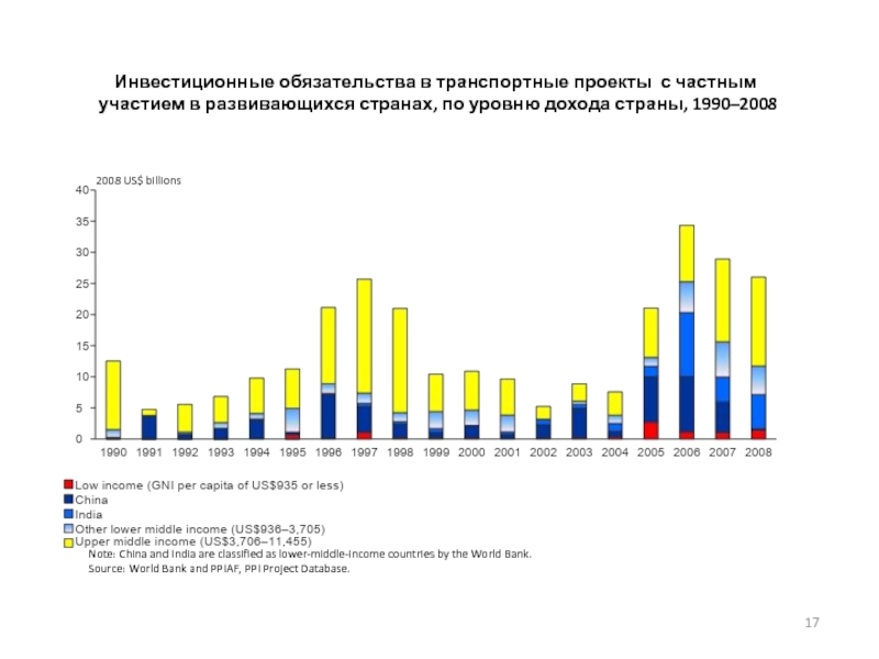 Слайд 17Инвестиционные обязательства в транспортные проекты с частным участием в развивающихся