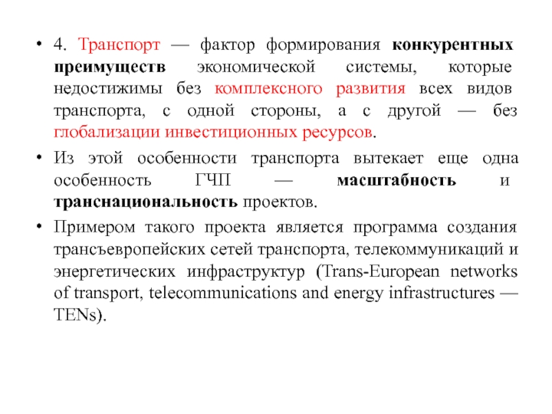 Слайд 64. Транспорт — фактор формирования конкурентных преимуществ экономической системы, которые