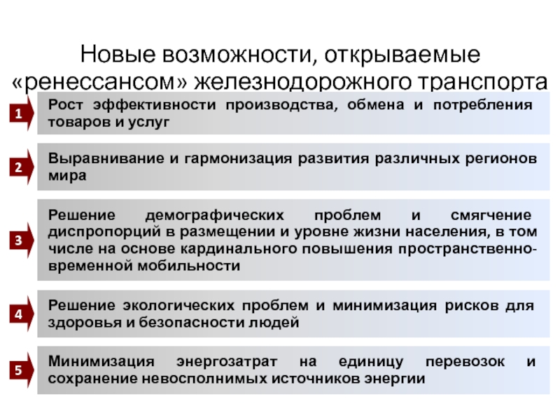 Слайд 37Новые возможности, открываемые «ренессансом» железнодорожного транспорта
