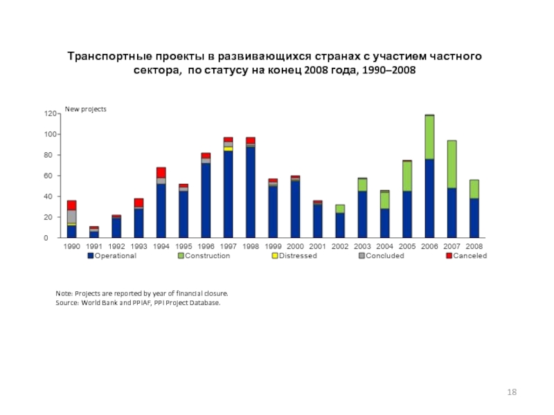 Слайд 18Транспортные проекты в развивающихся странах с участием частного сектора, по