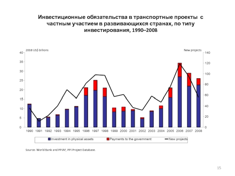 Слайд 15Инвестиционные обязательства в транспортные проекты с частным участием в развивающихся