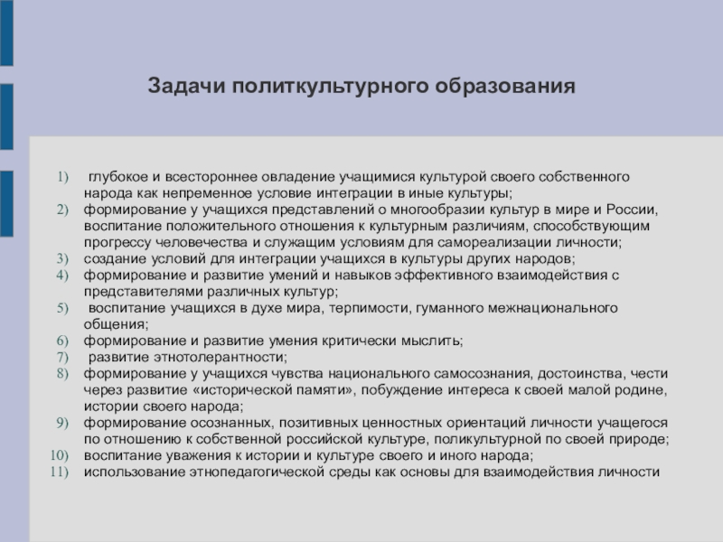 Поликультурность (образования) – построение образования на принципе культурного плюрализма, признании