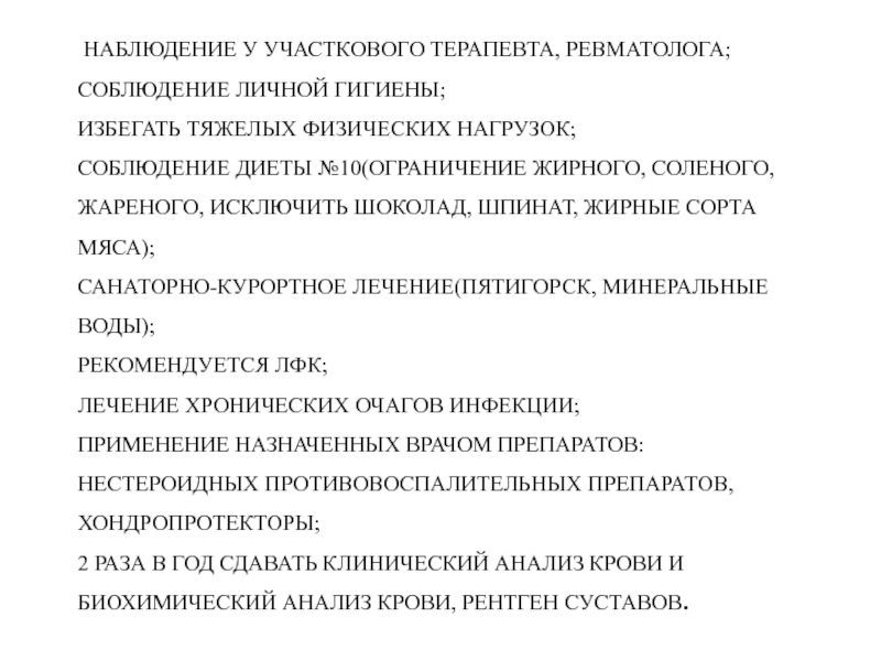 Слайд 13 Наблюдение у участкового терапевта, ревматолога;
