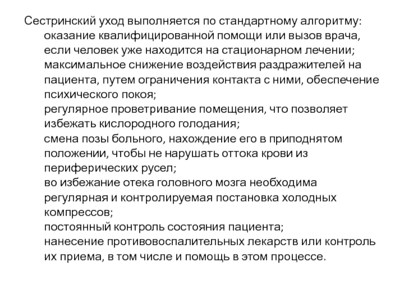 Слайд 11Сестринский уход выполняется по стандартному алгоритму: