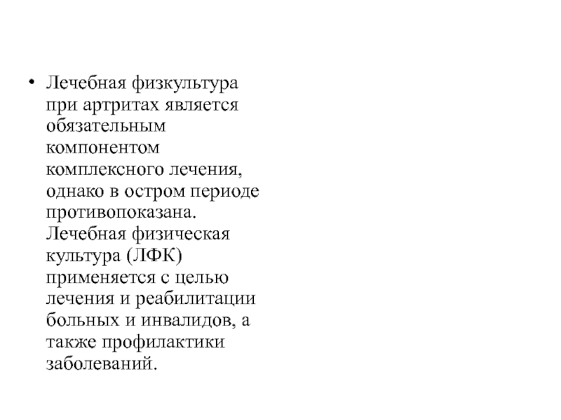Слайд 10Лечебная физкультура при артритах является обязательным компонентом комплексного лечения, однако