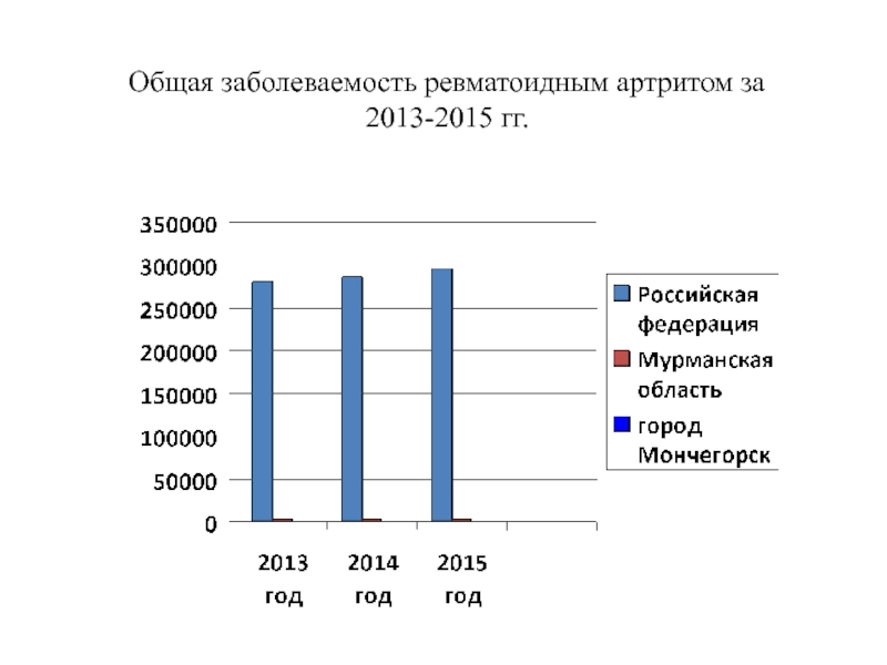 Слайд 5Общая заболеваемость ревматоидным артритом за 2013-2015 гг.