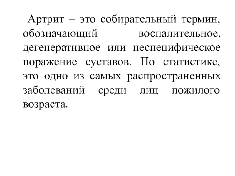 Слайд 2 Артрит – это собирательный термин, обозначающий воспалительное, дегенеративное