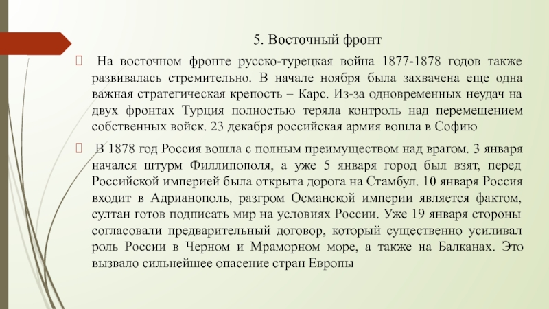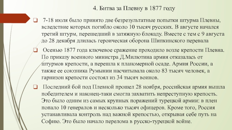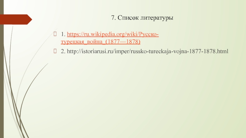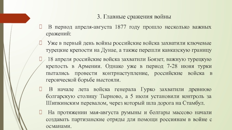 (по видам транспорта, за исключением водного)Тема: Русско-турецкая война 1877-1878
