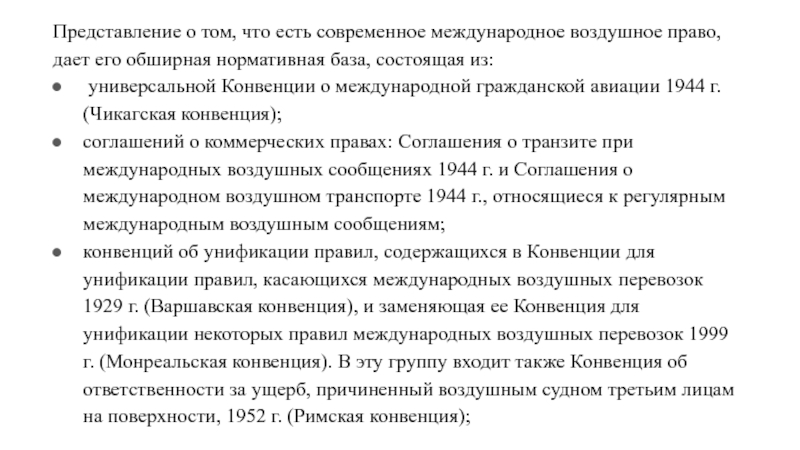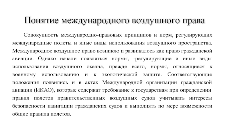 Слайд 4Представление о том, что есть современное международное воздушное право, дает
