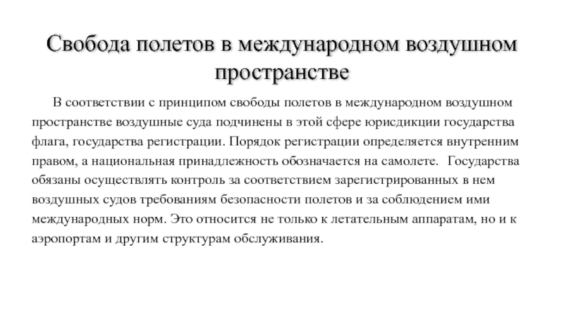 Слайд 6Свобода полетов в международном воздушном пространстве