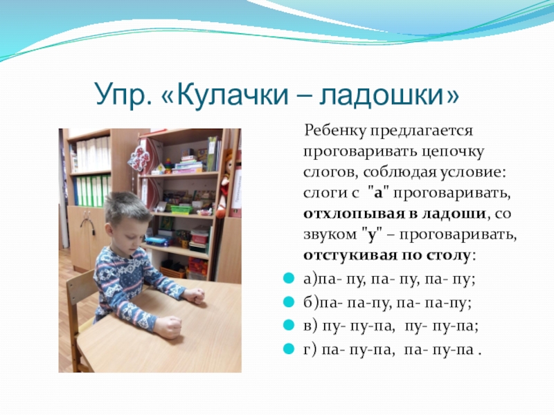 - продолжается на протяжении всей работы по формированию слоговой структуры слова.