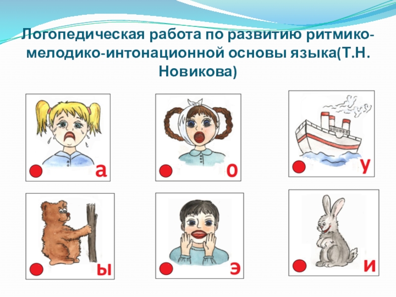 Слайд 9Логопедическая работа по развитию ритмико- мелодико-интонационной основы языка(Т.Н.Новикова)