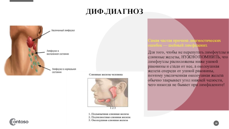 Большие трудности представляет дифференциальная диагностика осложненных форм эпидемического паротита, особенно если поражение слюнных желез выражено не резко или отсутствует